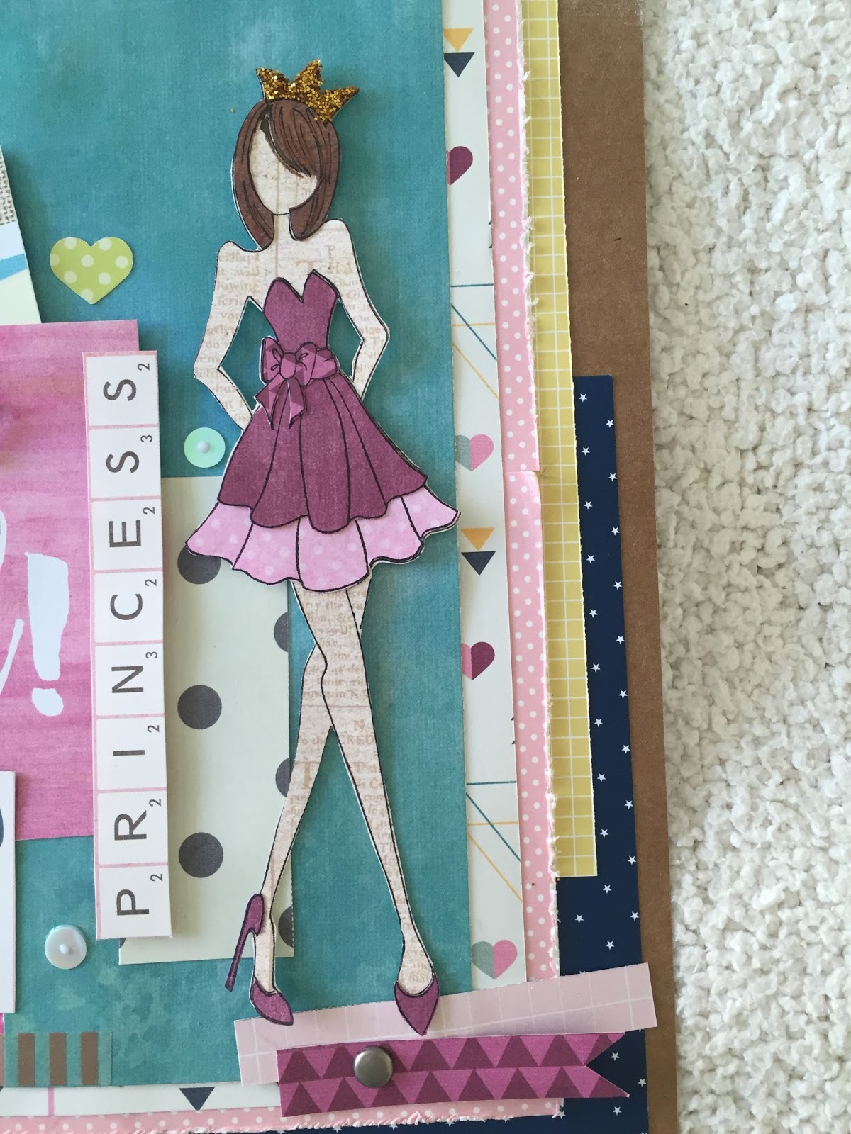 | Como escolhi fazer uma página dupla, usei papéis iguais e alguns detalhes iguais, mas com cores diferentes... |